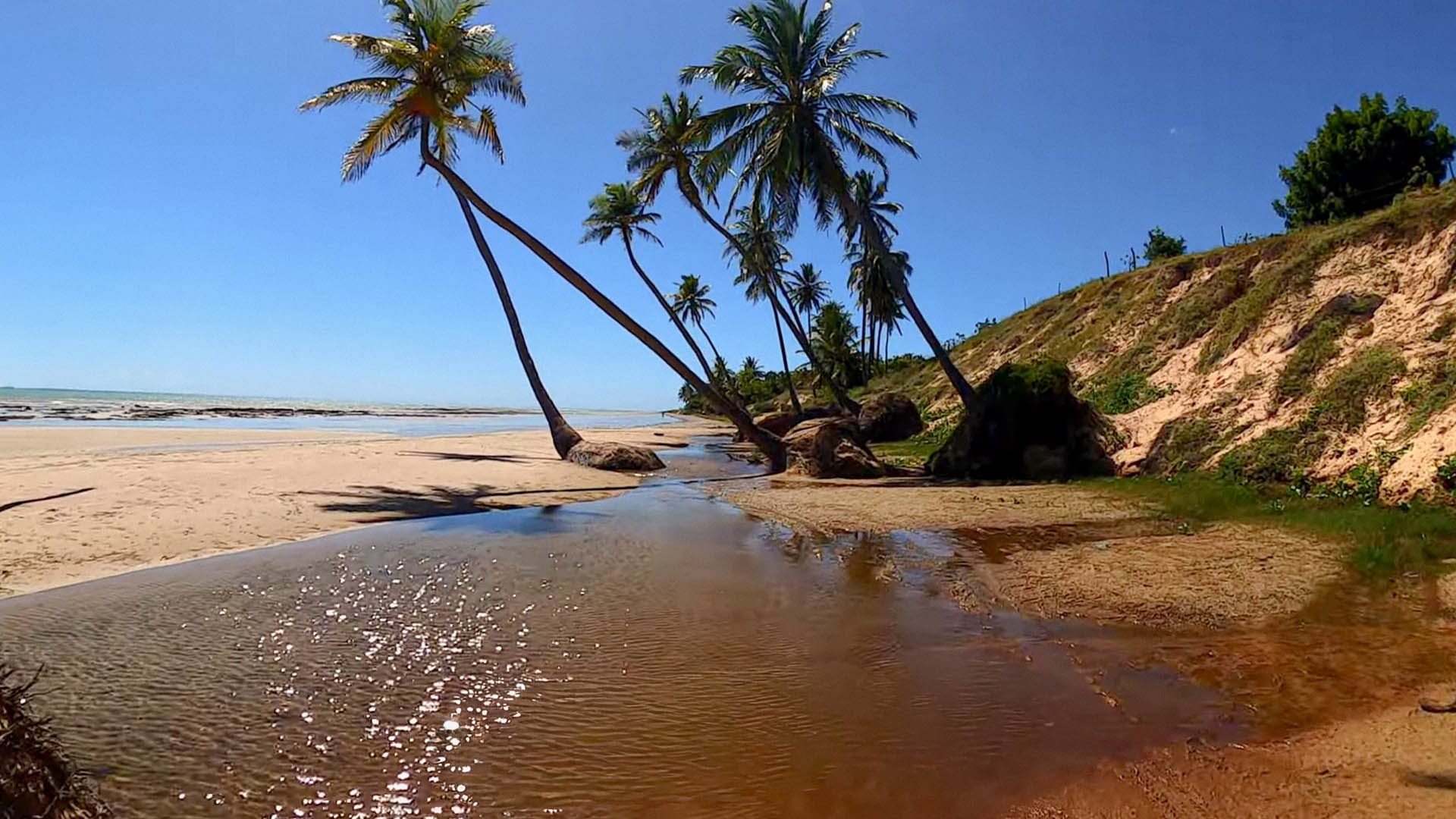 Ao longo do dia, piscinas naturais se formam na orla da praia e é possível ver os barcos de pesca atracados, em movimento conjunto com o mar.